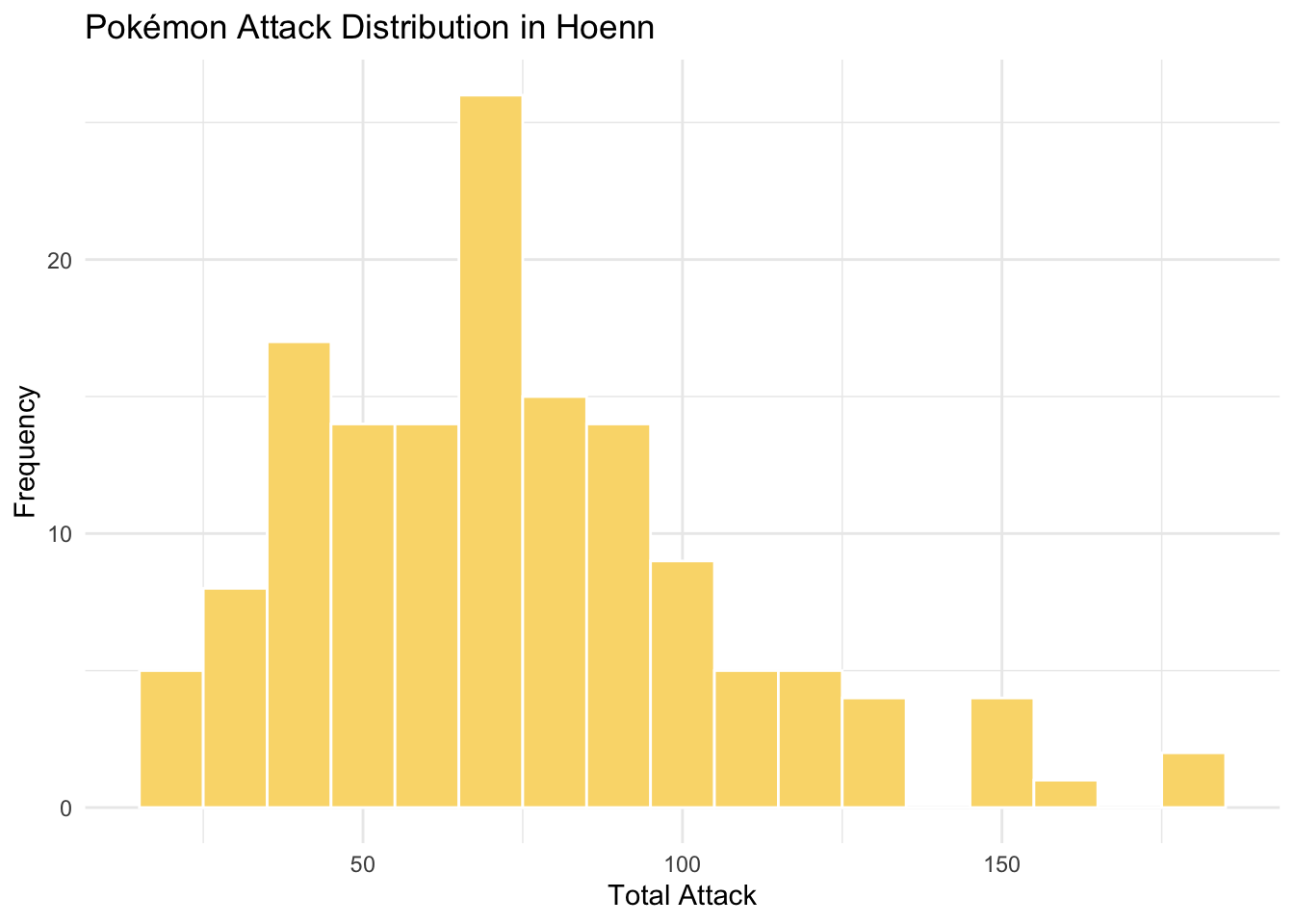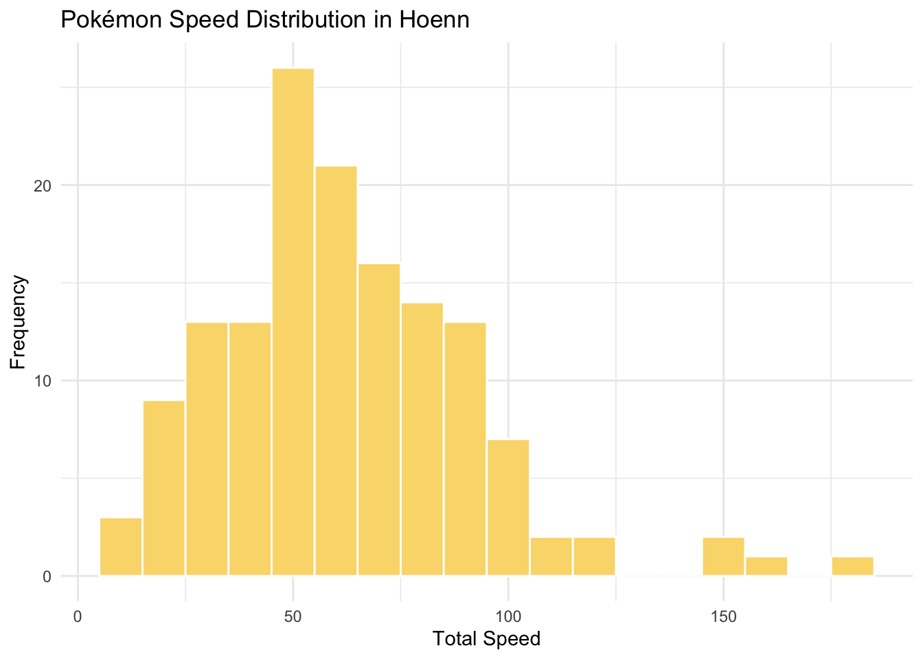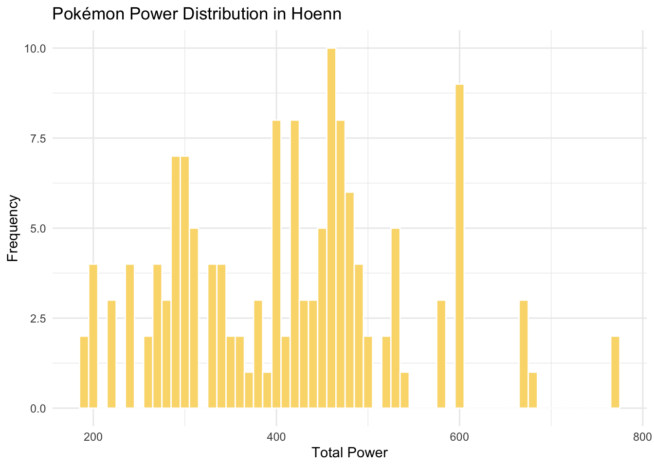 This analysis examines the distribution of Pokémon attributes, such as base stats, abilities, and typing, across different regions, revealing how these characteristics vary based on regional environments and design philosophies. By evaluating attribute frequency and stat distributions, users can uncover trends in how Pokémon are balanced within their ecosystems. Interactive visualizations allow trainers to compare regional averages, explore outliers, and gain insights into how different factors—such as habitat, evolution, and competitive viability—shape the distribution of Pokémon attributes. This resource is designed for educators, researchers, and enthusiasts, offering an engaging and accessible approach to exploring Pokémon metadata through statistical analysis.